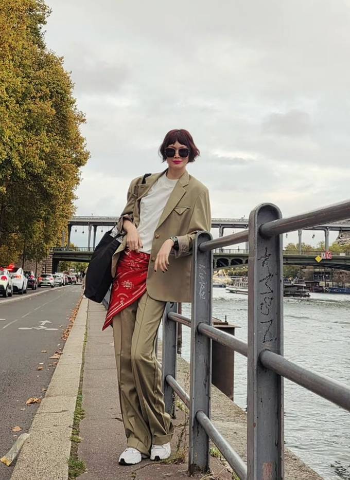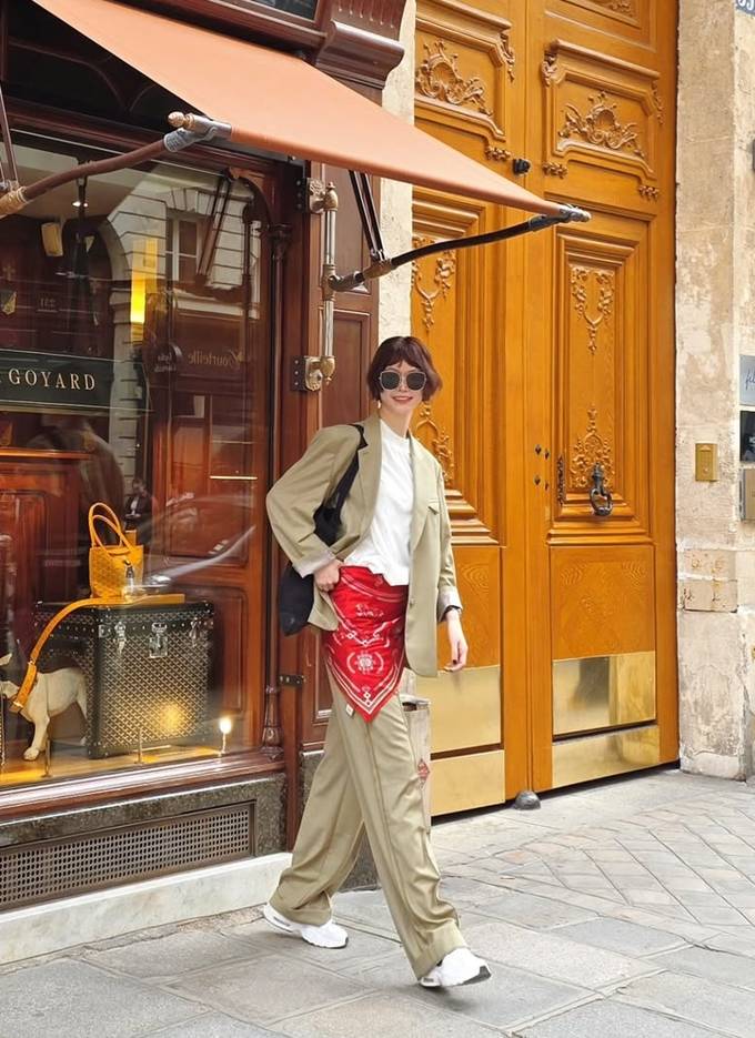 모델 송경아, 파리에서 센스 100점! 반다나 두른 하이패션 감각 프렌치 슈트룩