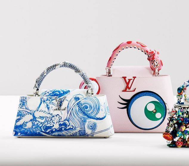 아트 베젤 파리 프레젠테이션을 위해 새롭게 제작된 멀티컬러 플러시 볼(Multicolor Plush Ball) 옆에는 무라카미의 대표적인 스마일링 플라워(Smiling Flowers) 모티프를 재현한 카퓌블룸(Capubloom)과 카퓌신 이스트 웨스트 레인보우(Capucines East West Rainbow) 등은 루이 비통의 아이코닉 백을 현대적으로 재해석한 아이템이다.