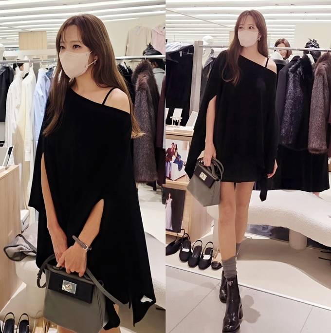 공개한 사진에서 소유진은 어깨를 살짝 드러낸 원숄더 스타일의 블랙 케이프 톱과 미니 원피스를 매치한 나들이룩으로 우아하면서도 세련된 분위기를 연출했다.