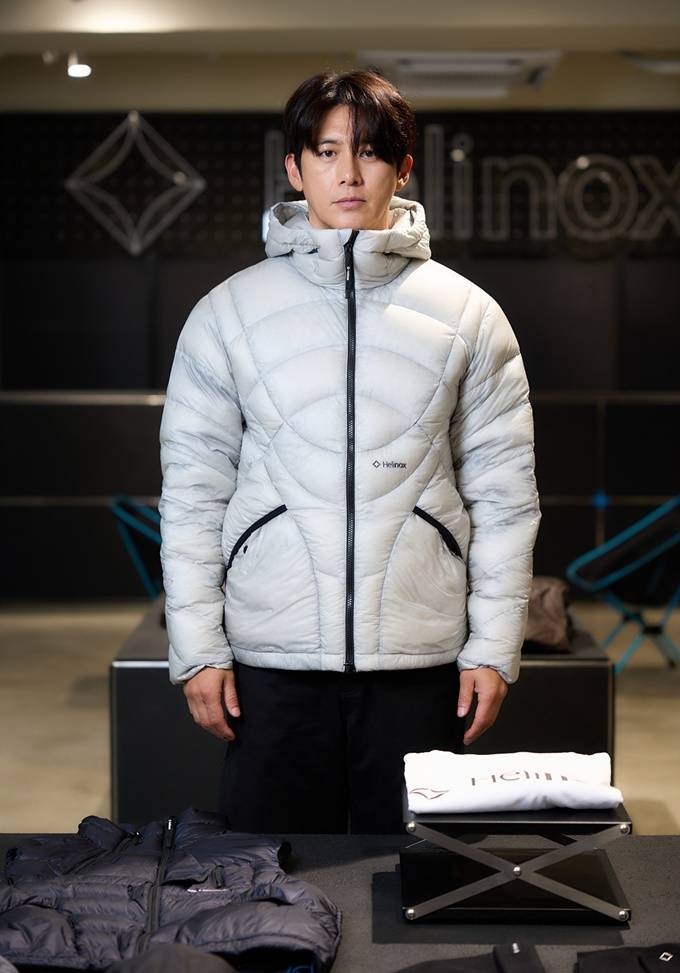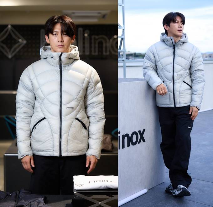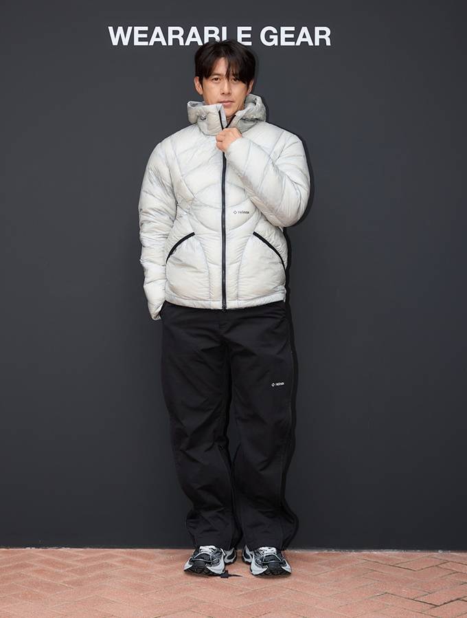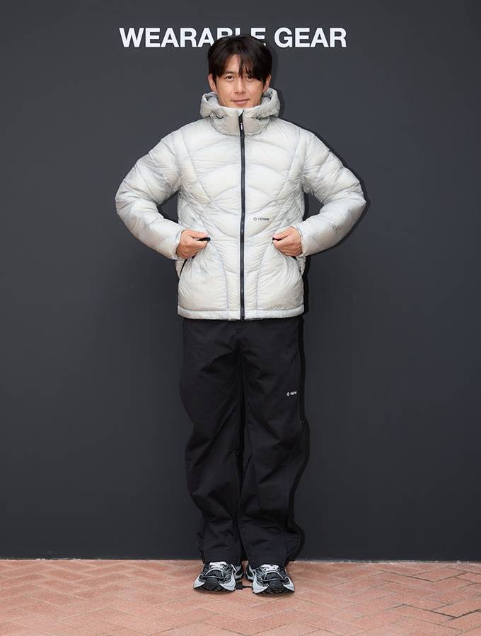 배우 고수는 라이트 그레이 톤의 이클립스 팩 다운 자켓에 블랙 팬츠를 매치해 미니멀하면서도 기능적인 무드를 완성했다.