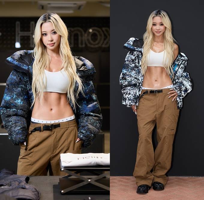 우주소녀 다영, 패딩의 변신은 무한대! 예술적인 프린트와 실루엣 아웃도어 패딩룩
