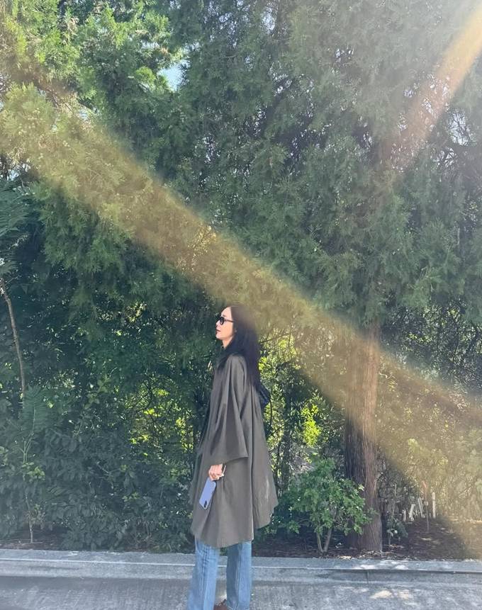 공개한 사진에서 최지우는 루즈하게 떨어지는 여유로운 실루엣의 카키빛 트렌치코트로 가을 무드를 한껏 살렸다.