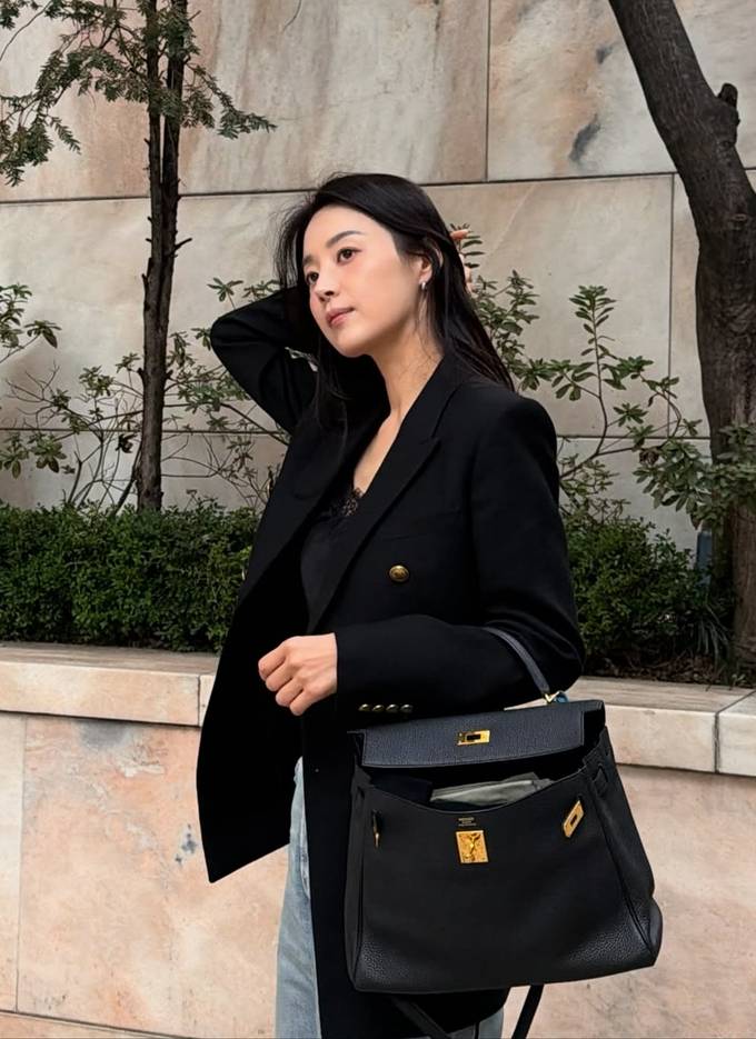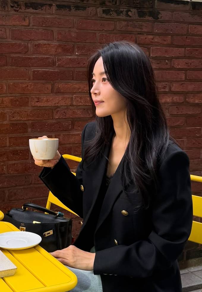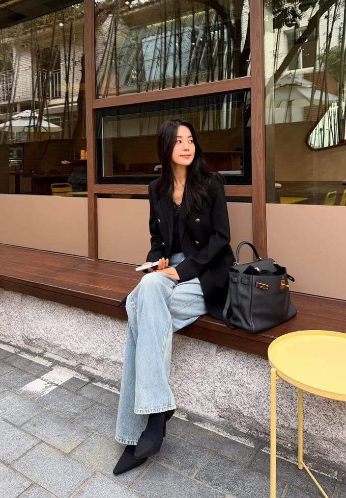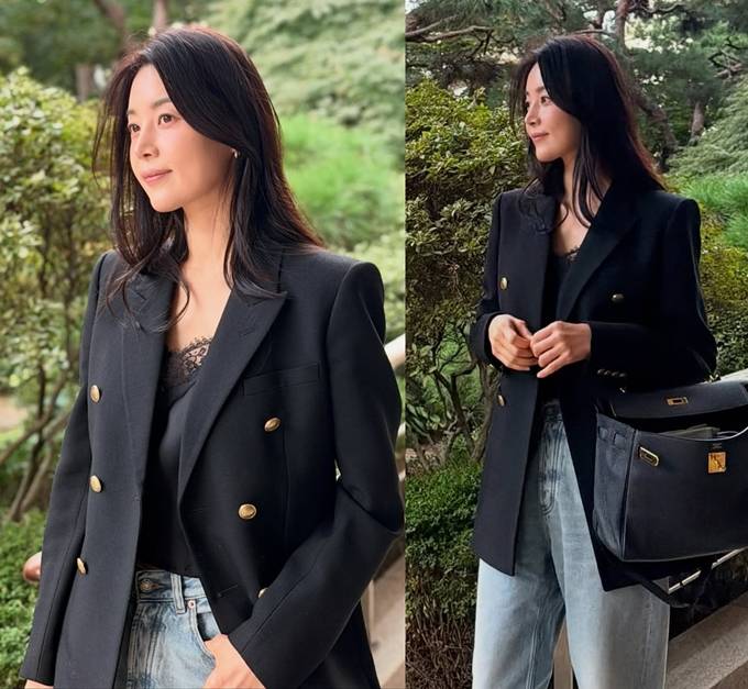 한지혜, 골드 버튼 재킷이 완벽! 딱 떨어진 재킷 모던 클래식 멋쟁이 가을 외출룩