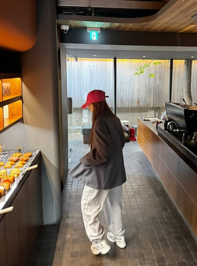 공개한 사진에서 윤은혜는 그레이 조거 팬츠에 화이트 레터링 반팔 티셔츠를 입고 오버릿 그레이 슈트 재키시을 걸친 애슬레저룩으로 힙한 스타일을 선보였다.