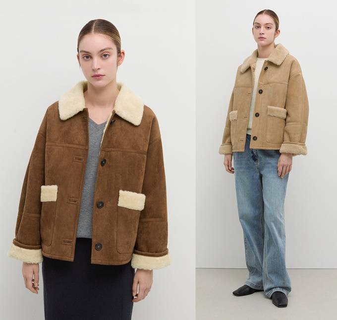 스웨이드 무스탕의 매력은 스타일과 보온성을 동시에 누릴수 있는 겨울 아우터의 정석으로 브라운 컬러부터 크림, 올리브 같은 뉴트럴 컬러까지 다양한 컬러로 출시돼 선택의 폭도 넓어졌다.