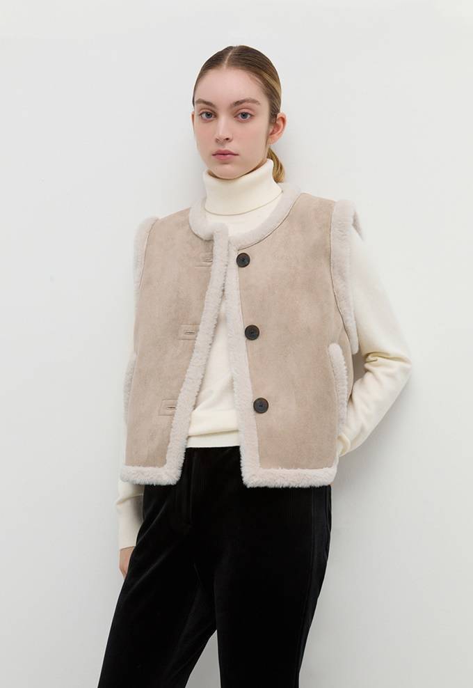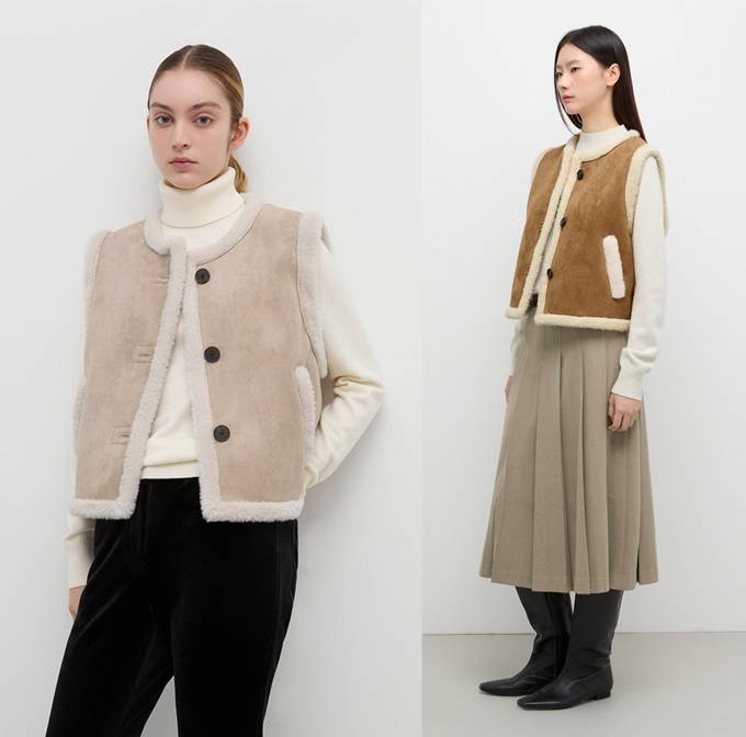 이외에도 하프 기장의 스웨이드 무스탕부터 크롭 무스탕 재킷, 무스탕 베스트 등 다양한 스타일의 무스탕 아우터를 선보이고 있다.