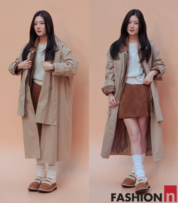 [패셔엔 포토] 정채연, 어그 로퍼와 꿀조합! 늦가을 멋스러운 트렌치 코트룩