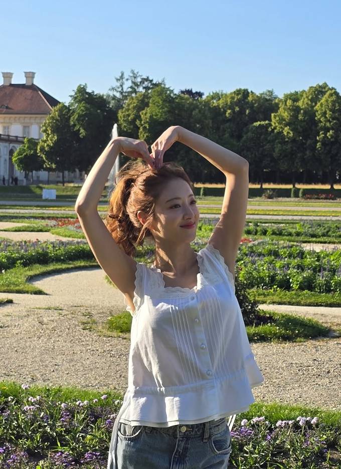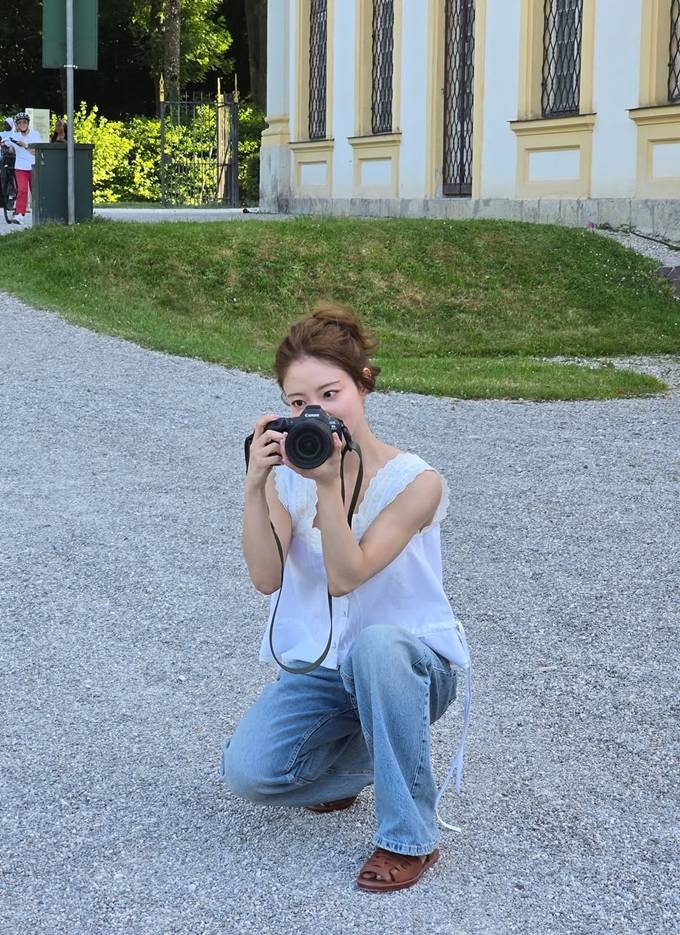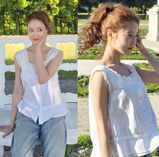 공개한 사진에서 이세영은 유럽의 로즈넉한 공원을 배경으로 레이스 디테일이 돋보이는 화이트 민소매 블라우스에 연청 데님 팬츠를 매치한 여행룩으로 가벼운 봄날의 감성을 드러냈다.