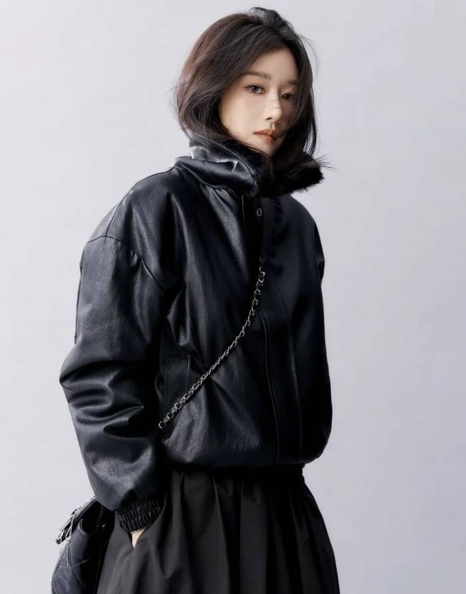 또 오버핏 블랙 레더 재킷으로 강렬한 카리스마를 드러냈다. 체인백을 더해 한층 엣지 있는 포인트를 주며, 서예지만의 도회적이고 미스터리한 아우라를 극대화했다.