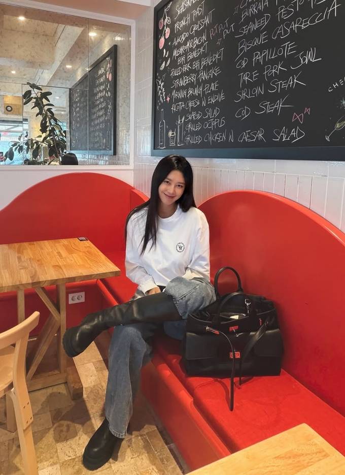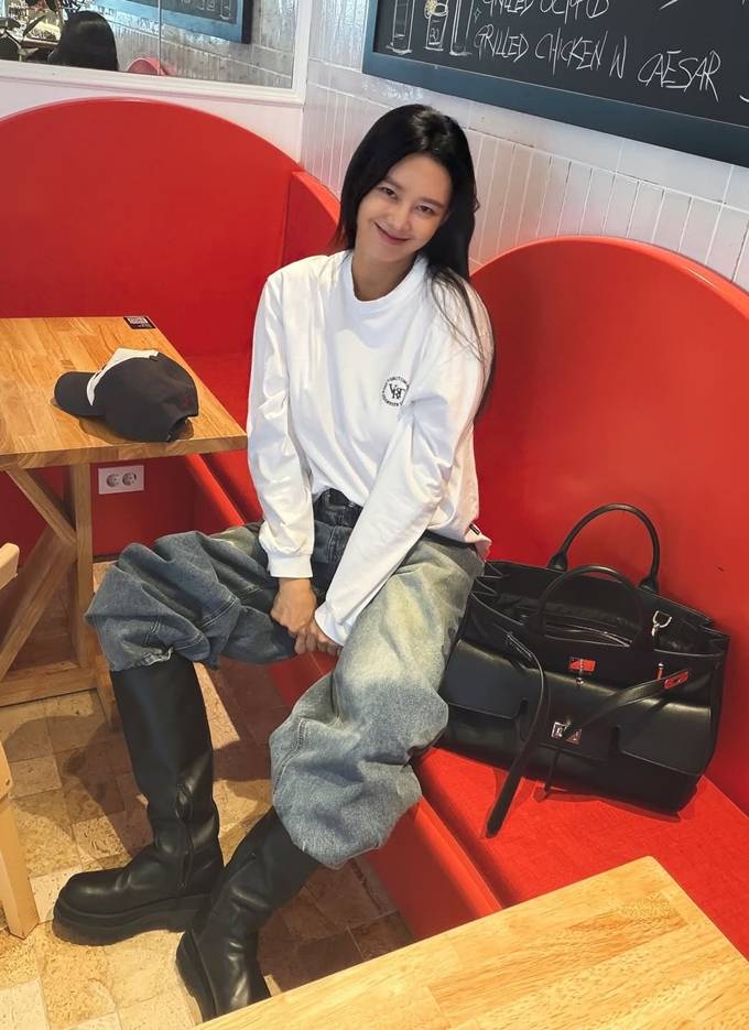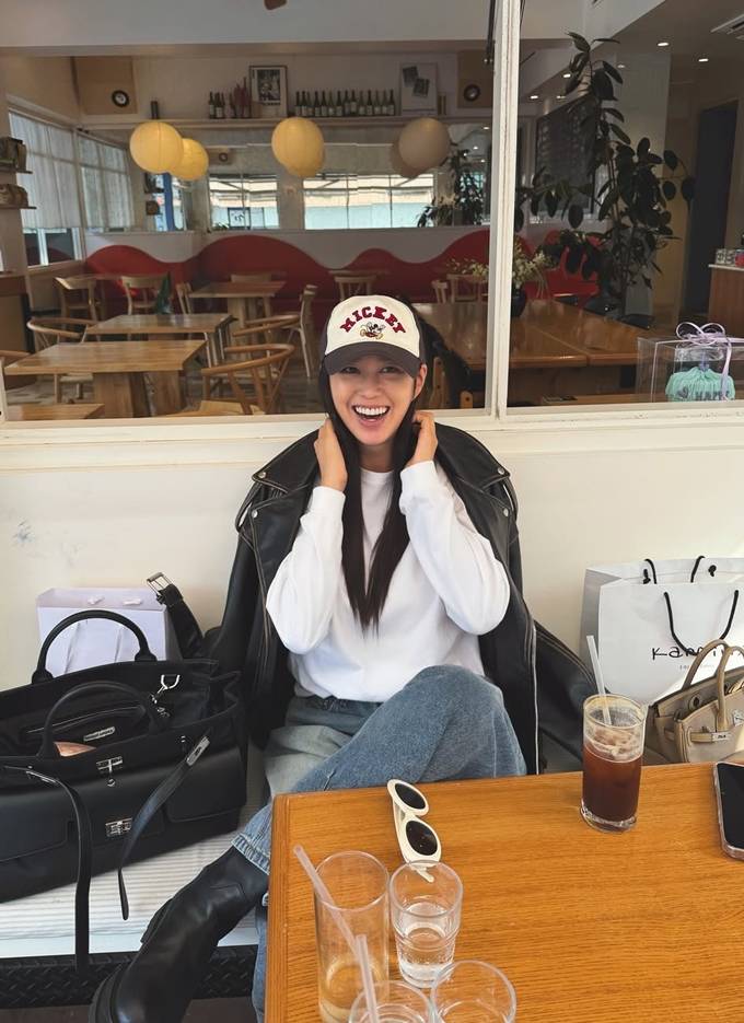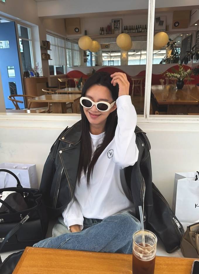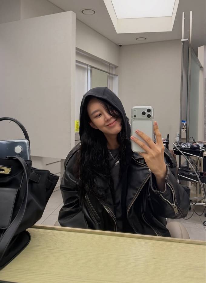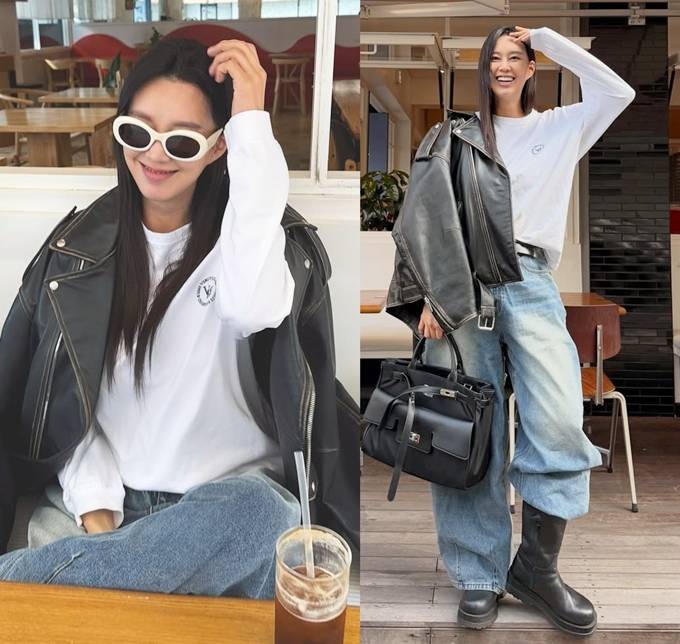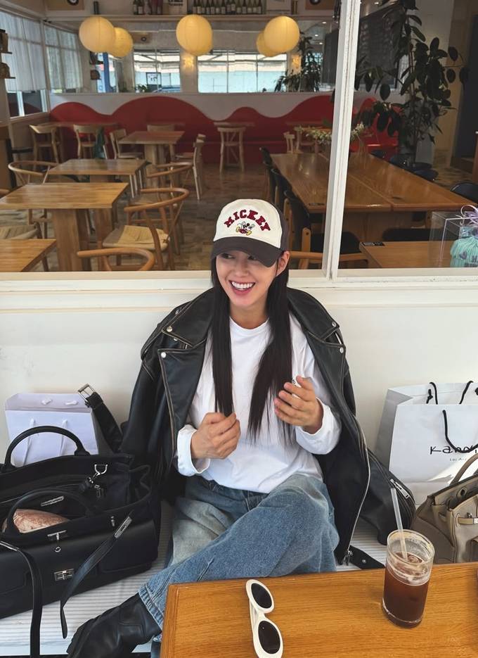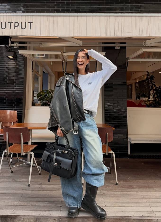 공개한 사진에서 지소연은 헐렁한 와이드 핏 데님 팬츠에 화이트 티셔츠를 입고 블랙 바이커 레더 재킷을 걸친 외출룩으로 세아이 엄마라고는 믿기지 않는 힙한 스타일로 눈길을 사로잡았다.