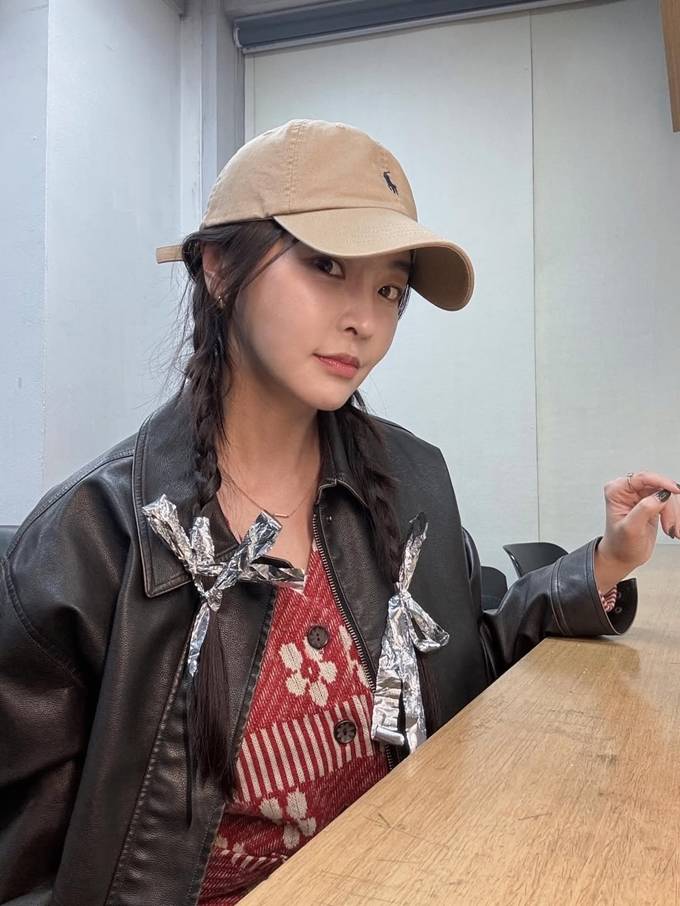 특히 두 갈래로 땋은 헤어와 헤어 리본, 베이지 컬러 볼캡을 착용해 편안하면서도 동안 매력을 극대화했다.