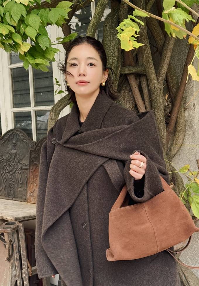 공개한 사진에서 기은세는 볼륨감 있는 실루엣의 클래식한 브라운 오버핏 롱 코트와 머플러 셋업에 데님 팬츠를 매치한 외출룩으로 실용적인 프렌치 감성을 한껏 드러냈다.