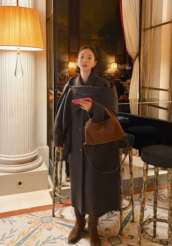 배우 기은세가 프랑스 파리에서 머플러와 코트 셋업의 외출룩으로 완벽한 파리지앵으로 변신했다.