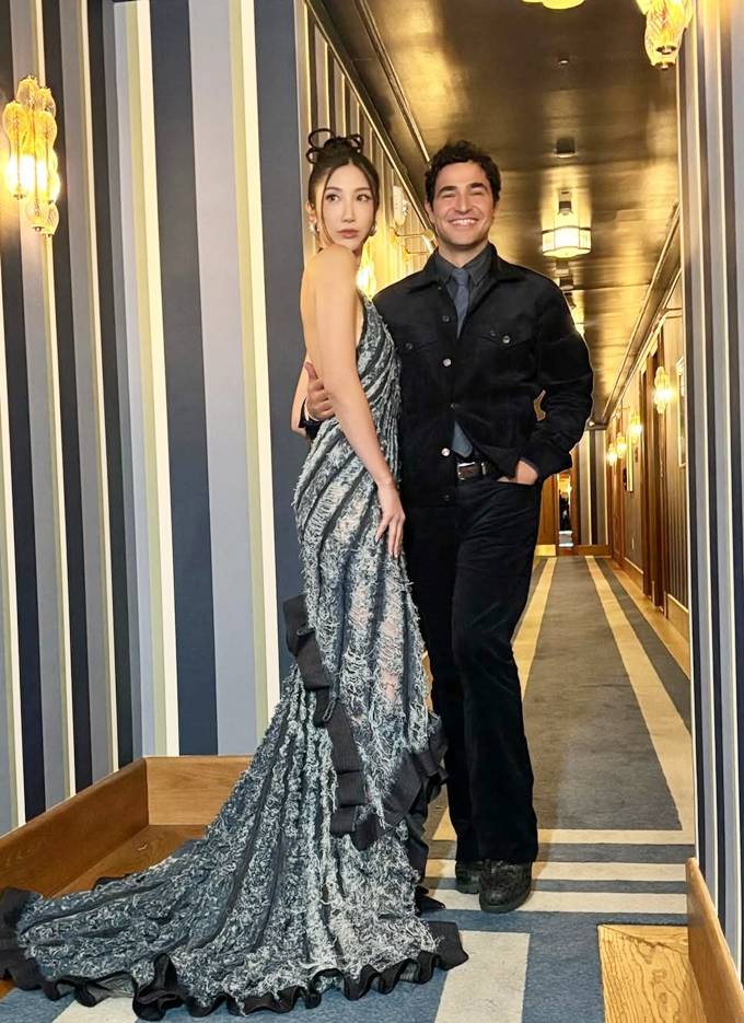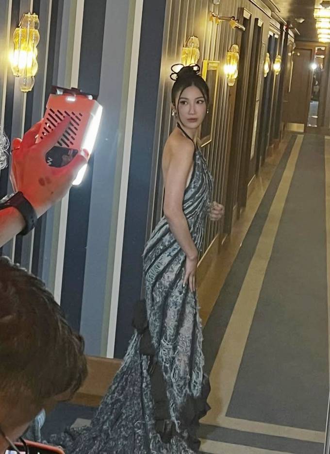 공개한 사진과 영상에서 이재는 몸의 실루엣을 따라 흐르는 비대칭 드레이프와 하이넥 홀터 디자인이 돋보이는 블루 톤의 독특한 텍스처의 드레스룩으로 대담하면서도 예술적인 분위기의 고혹미를 발산했다.