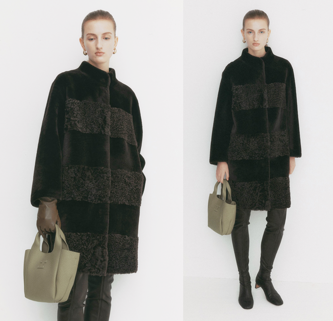 유려하면서도 안정감 있는 실루엣이 특징이며, 차분한 뉴트럴과 브라운 톤의 팔레트를 통해 겨울의 깊이와 세련된 무드를 완성했다.