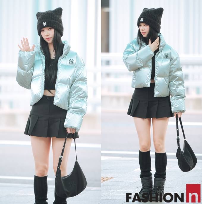 [패션엔 포토] 에스파 카리나, 애니 탈출 만찢녀! 공항 녹인 귀요미 캣비니에 숏패딩 일본 출국
