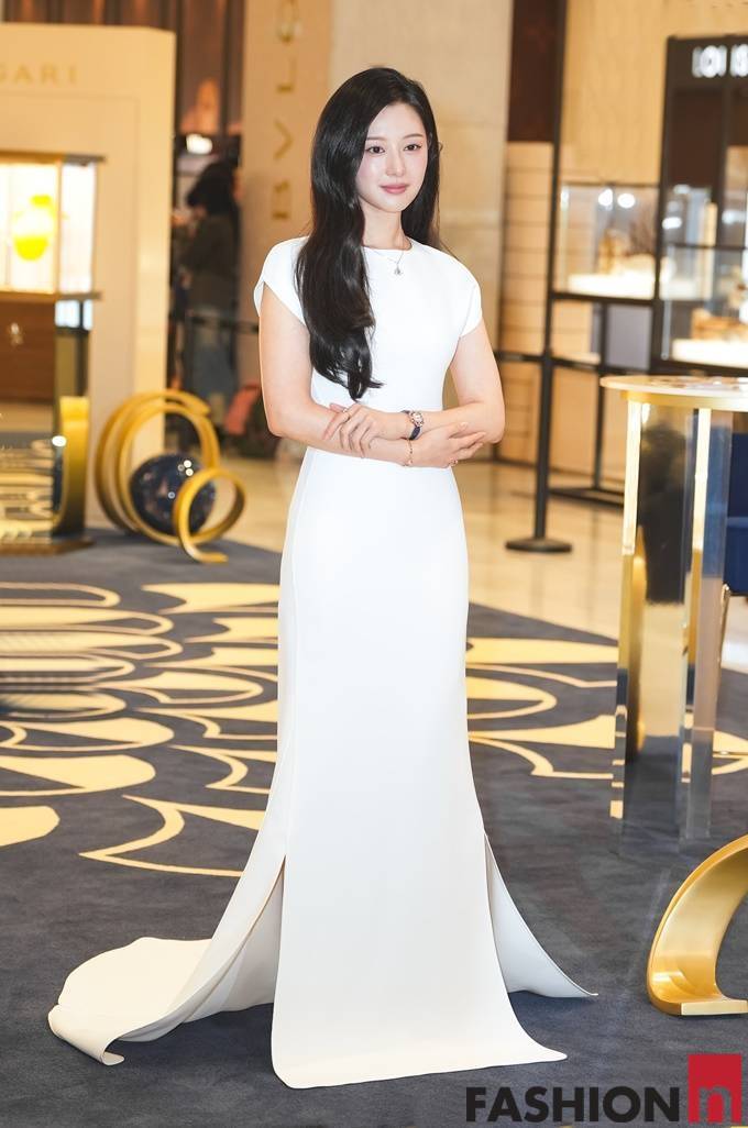 배우 김지원이 우아한 화이트 드레스룩으로 판교 백화점을 밝혔다.