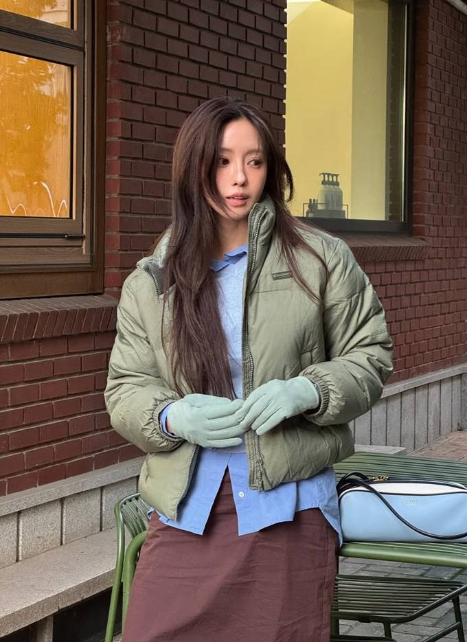 공개한 사진에서 효민은 ‘초크 VS 민트’ 숏패딩을 입고 실용적이면서도 감각적인 패딩 스타일을 선보였다.