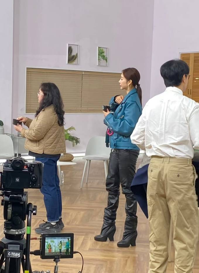 배우 한다감이 레더 재킷에 가죽 팬츠를 매치한 출근룩으로 걸크러시한 매력을 한껏 드러냈다.