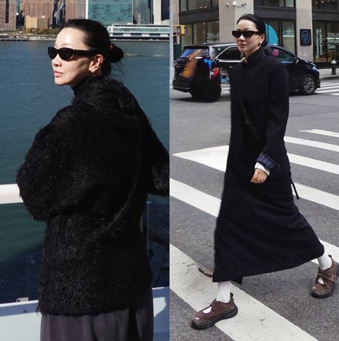모델 겸 배우 장윤주가 뉴욕에서 ‘착한여자 부세미’의 가선영 같은 블랙 시크미를 발산했다.