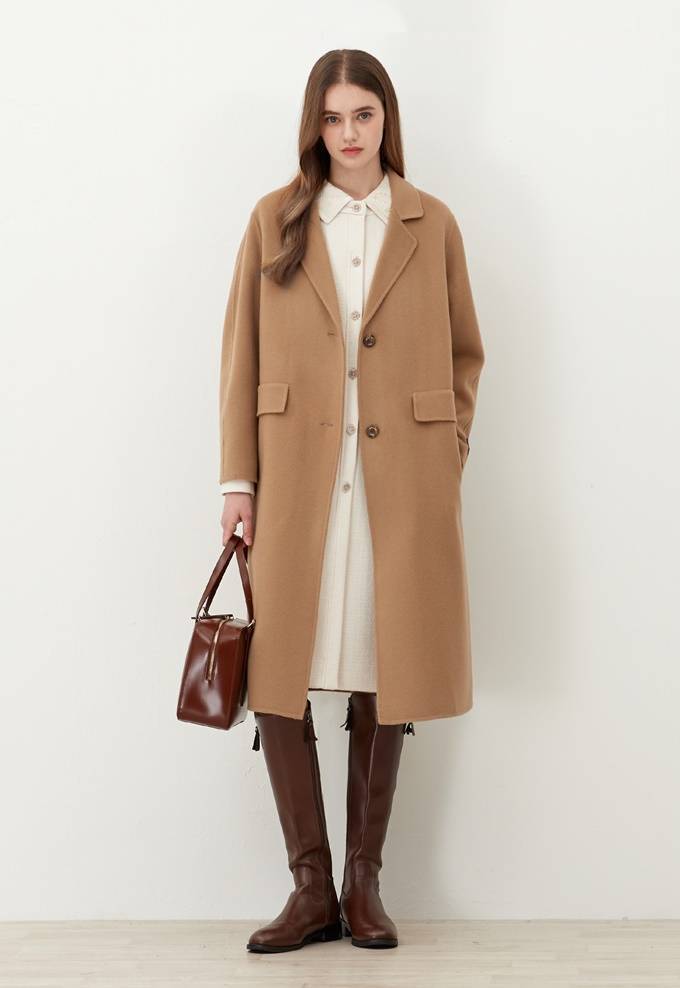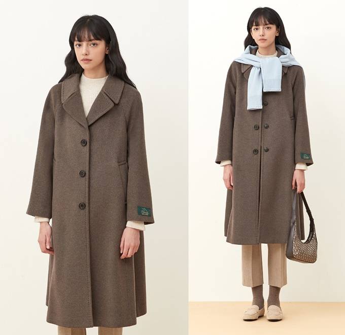 여성 트러디셔널 브랜드 '키이스(KEITH)' 카멜 코트는 양모와 캐시미어 소재의 핸드메이드 싱글 코트룩으로 부드럽고 포근한 착용감을 선사한다.