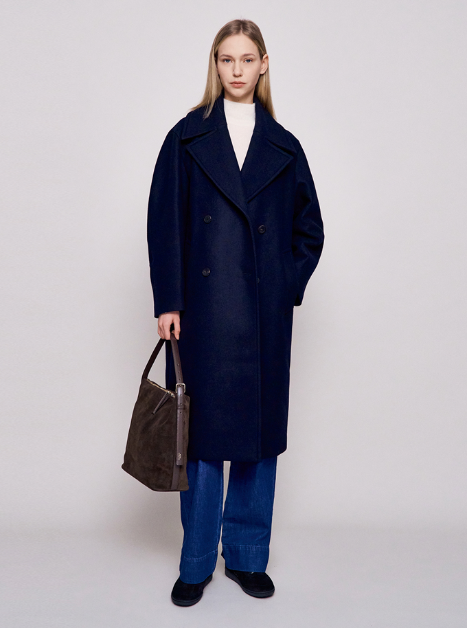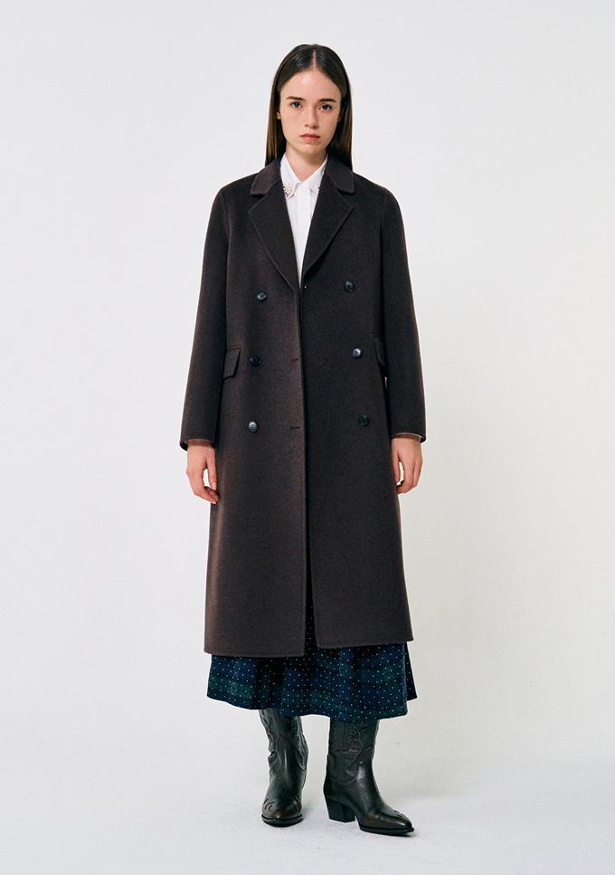 프렌치 컨템포러리 브랜드 '마쥬(MAJE)' 테일러드 맥시 코트는 클래식한 더블 버튼 디자인으로 울과 캐시미어 혼방 소재로 부드럽고 포근한 착용감을 선사한다.