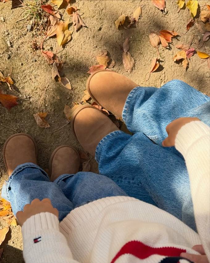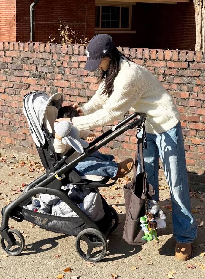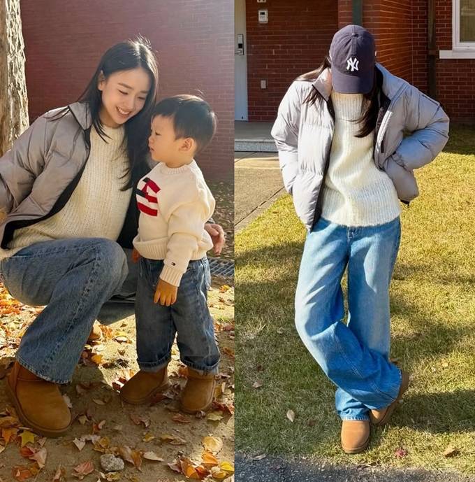 공개한 사진에서 손연재는 아들과 똑같이 아이보리 니트 스웨터에 데님 팬츠를 입고 어그 부츠까지 깔맞춤한 시밀러 커플룩으로 행복한 산책 스타일을 선보였다.