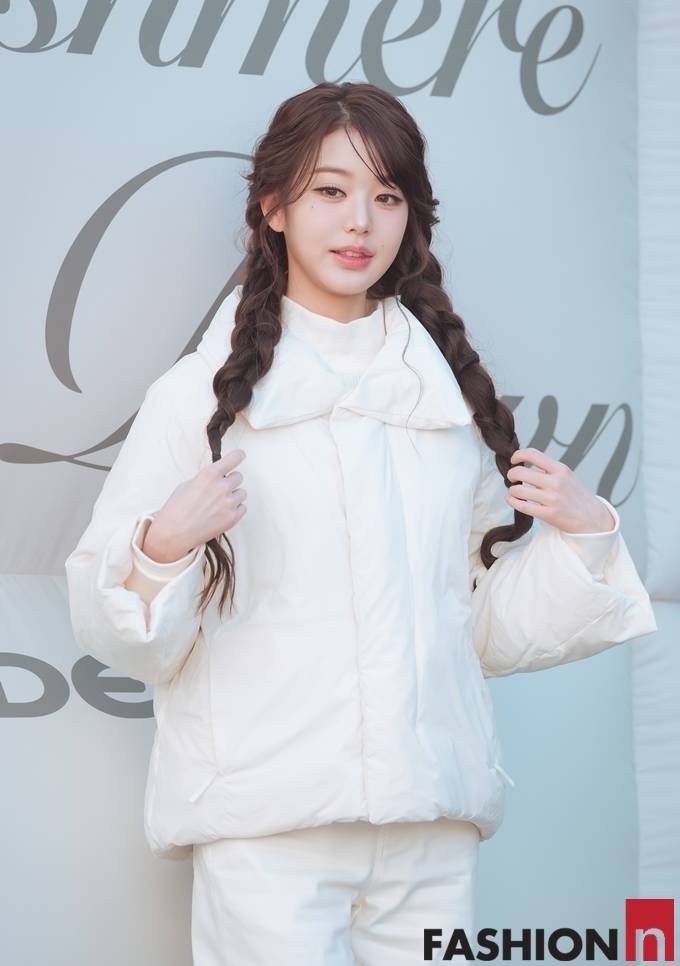 [패션엔 포토] 아이브 장원영, 성수동이 발칵! 양갈래 머리의 AI인형 올 화이트 패딩룩