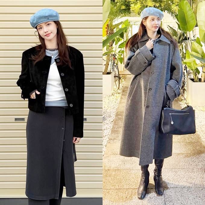 여기에 베레모와 롱부츠를 매치해 가을 분위기를 한껏 자아냈다.