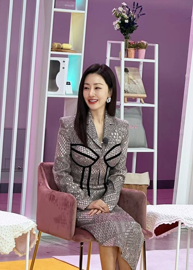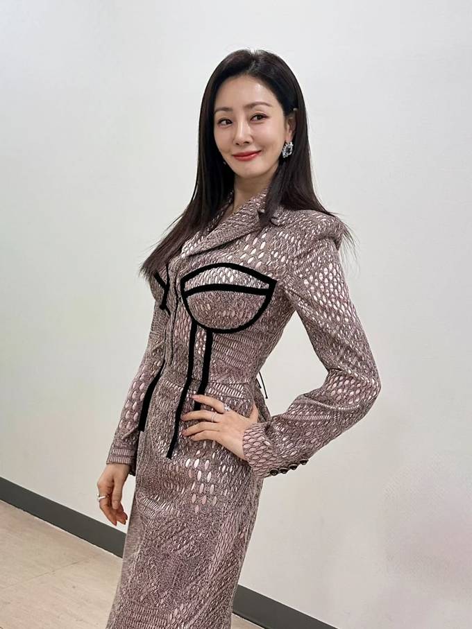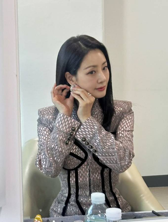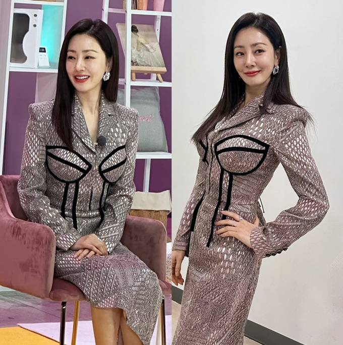 오나라, 오랜만에 용기낸 스타일! 반짝이에 블랙 트리밍 시선올킬 투피스 슈트 출근룩
