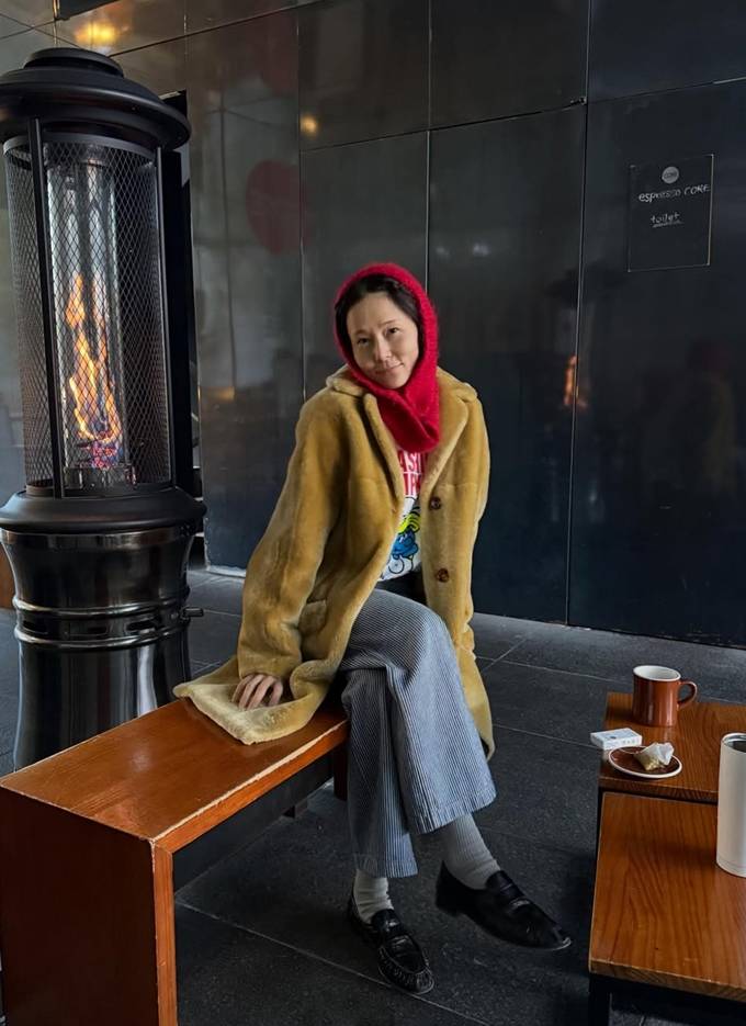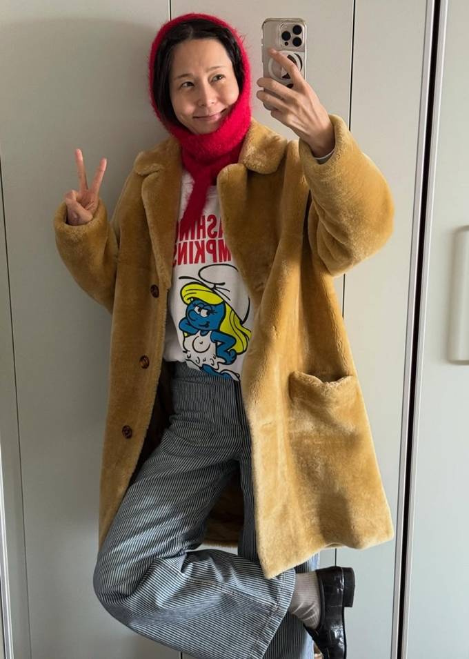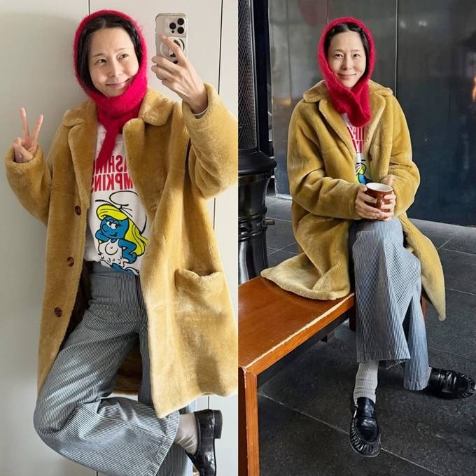공개한 사진에서 김나영은 빨간색 머플러를 머리에 두르고 옐로 페이크 퍼 코트를 착용한 외출룩으로 귀여우면서도 캐주얼한 데이트 스타일을 완성했다.