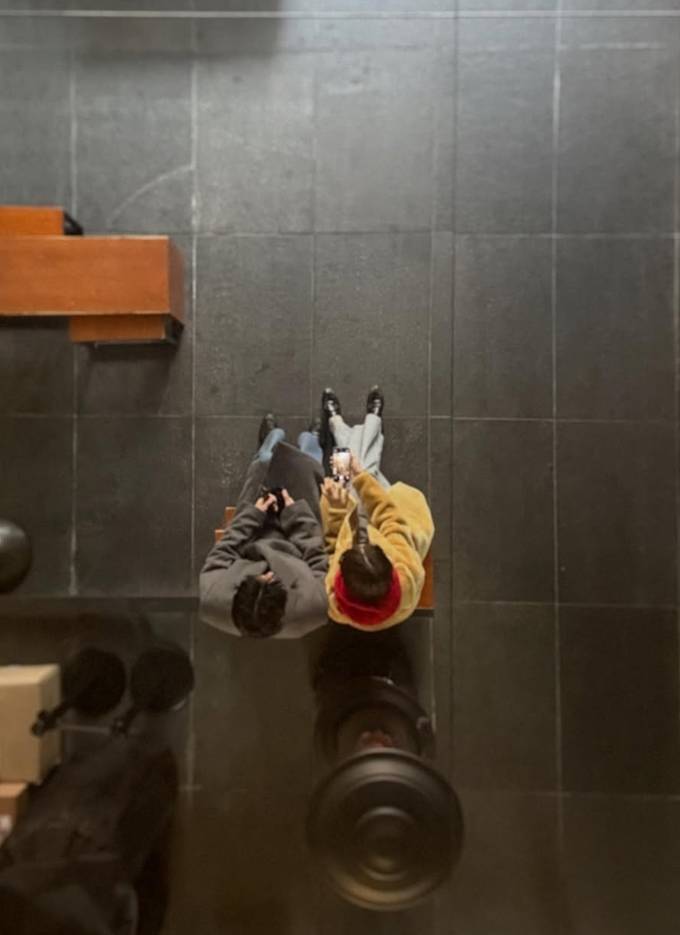 또 이너로 화이트 캐릭터 티셔츠와 핀 스트라이프 팬츠를 매치해 편안하면서도 캐주얼한 데이트룩을 선보였다.