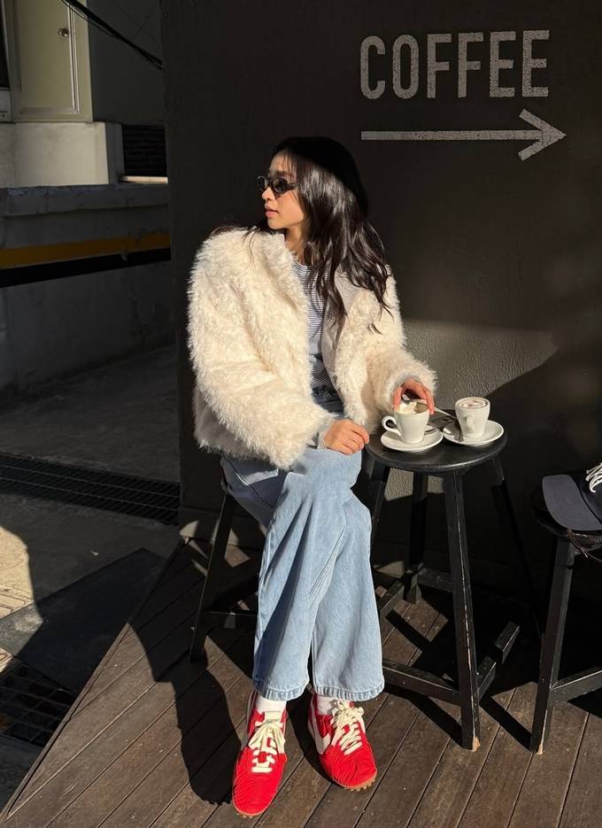 공개한 사진에서 손연재는 부드러운 텍스처가 매력적인 풍성한 화이트 퍼 재킷에 데님 팬츠를 입고 레드 포인트가 들어간 스니커즈를 매치한 외출룩으로 포근하면서도 경쾌한 분위기를 연출했다.