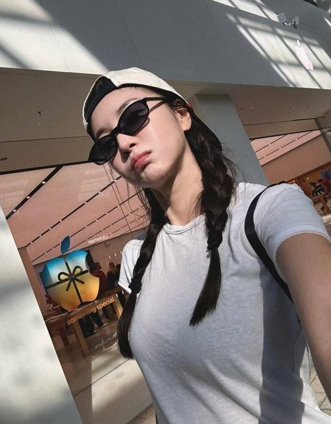 또 양갈래로 땋은 머리에 볼캡을 매치한 힙한 스타일로 걸리시한 매력을 한껏 드러냈다.