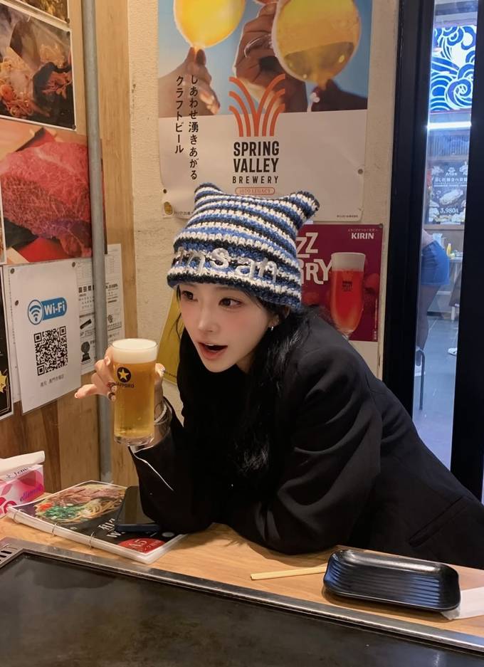 공개한 사진에서 최준희는 귀여운 고양이 니트 햇에 슬림한 블랙 재킷을 매치한 스트릿룩으로 귀여우면서도 시크한 여행 스타일을 완성했다.