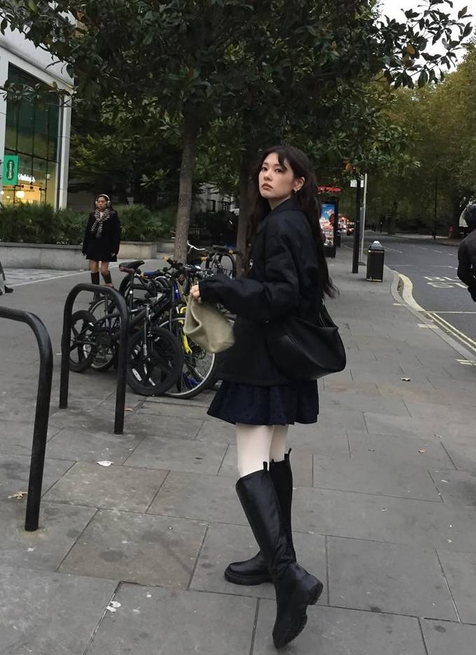 또 여기에 블랙 플리츠 미니 스커트와 블랙 롱부츠를 매치해 걸리시한 모습도 함께 드러냈다.