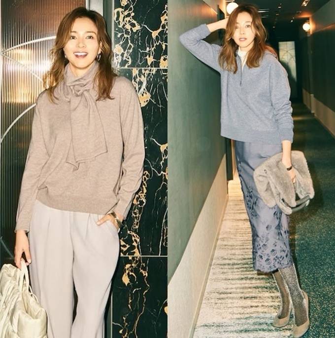 공개한 화보에서 야노시호는 카멜 컬러의 니트 스웨터와 머플러 셋업, 그리고 그레이 컬러의 니트 스웨터로 단아하면서도 품격있는 윈터룩을 선보였다.