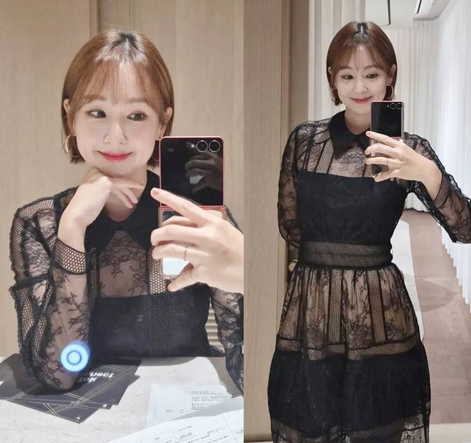 공개한 사진에서 오정연은 짧은 헤어 스타일에 허리에 스트랩이 잡힌 시스루 블랙 드레스로 단아하면서도 우아한 MC룩을 선보였다.