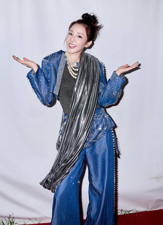 산다라박은 보석 장식과 스터드 디테일이 가득한 오버핏 재킷과 와이드 팬츠를 매치한 페스티벌룩으로 특유의 빈티지함과 과감하면서도 화려한 감각을 한껏 드러냈다.