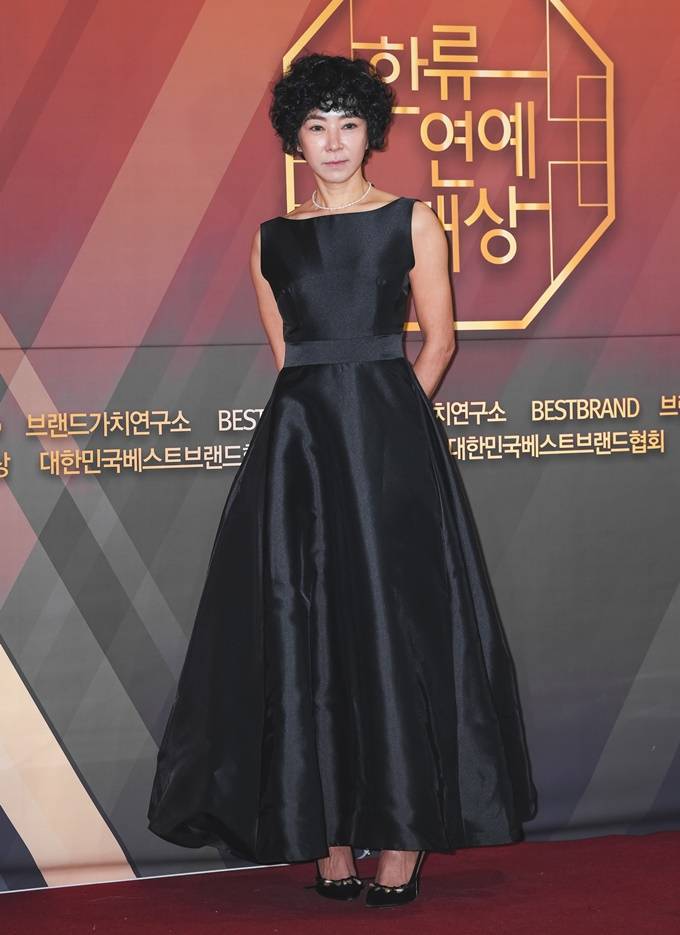 이날 이본은 빠마 머리에 광택감 있는 블랙 드레스룩으로 변함없는 매력을 발산했다.