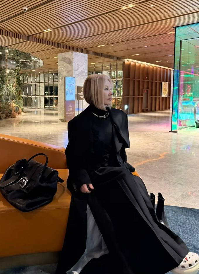 공개한 사진에서 이미숙은 갈색 숏컷 헤어 스타일에 블랙 터틀넥과 블랙 플리츠 롱 스커트를 입고 여기에 오버핏 블랙 트렌치코트를 매치한 출근룩으로 범접할 수 없는 왕언니의 카리스마를 드러냈다.