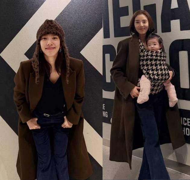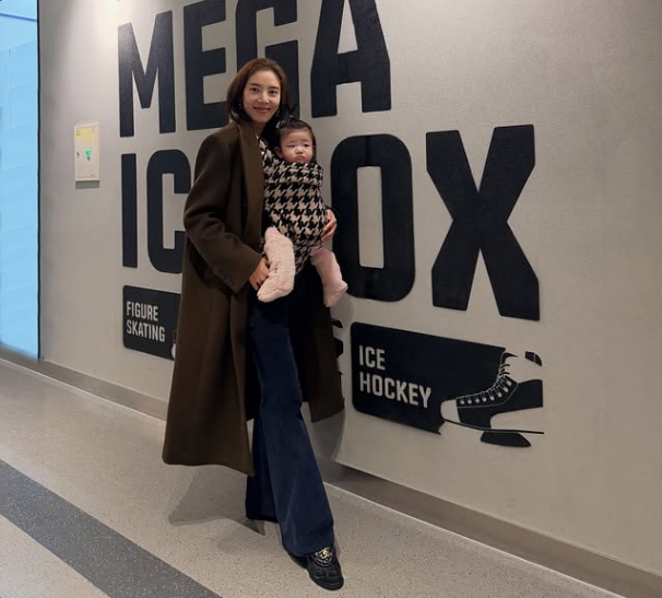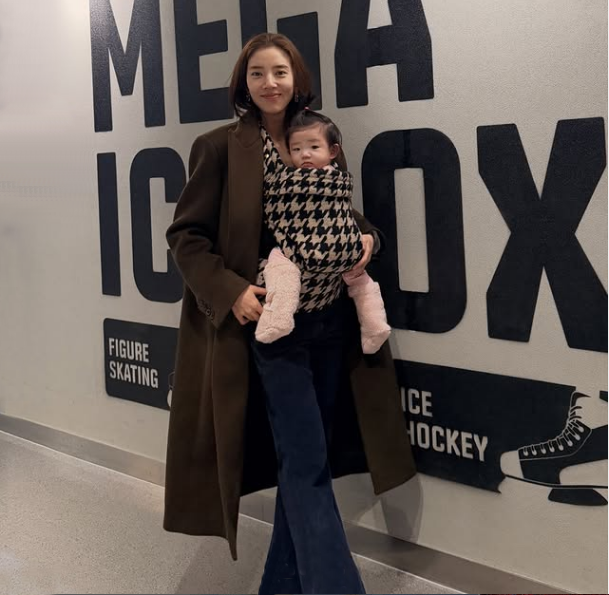 손담비, 아기 포대기도 남달라...스타일리시한 워너비맘 아이스링크 가족 나들이룩