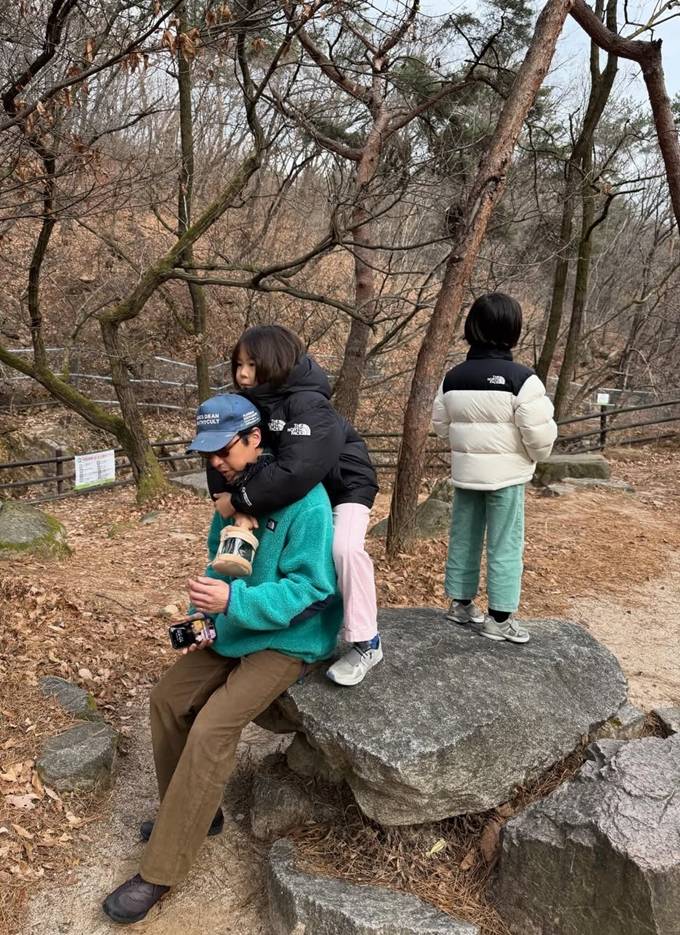 또 신우와 이준은 패딩과 뽀글이 후드 재킷을, 남편 마이큐는 뽀글이 집업 재킷에 머플러와 볼캡을 매치한 산책룩으로 훈훈한 패밀리룩을 완성했다.