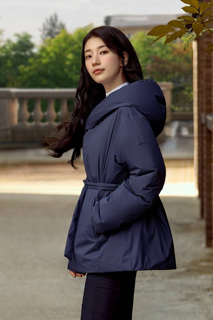 올 겨울 아웃도어 여성 다운 트렌드로 ‘벨티드 다운 패딩’이 부상하고 있다.