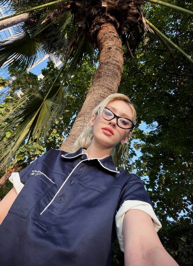 공개한 사진에서 전소미는 금발 헤어 스타일에 검은색 뿔테 안경을 쓰고 반팔 티셔츠에 짧은 쇼츠를 매치한 스타일로 시크하면서도 섹시한 긱시크룩을 완성했다.