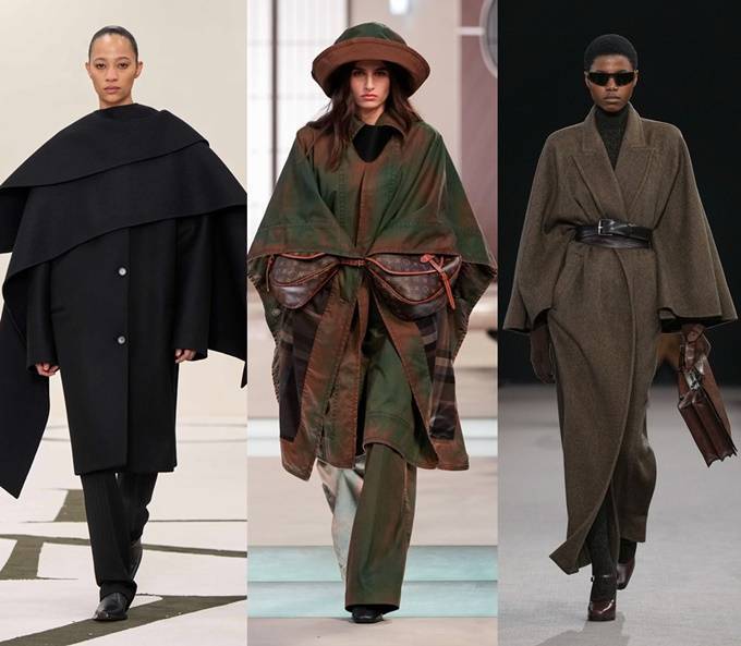 스카프와 숄, 케이프, 판초와 블랭킷을 합친 드라마틱한 실루엣을 선사하는 모던 케이프 트렌드가 부상했다.