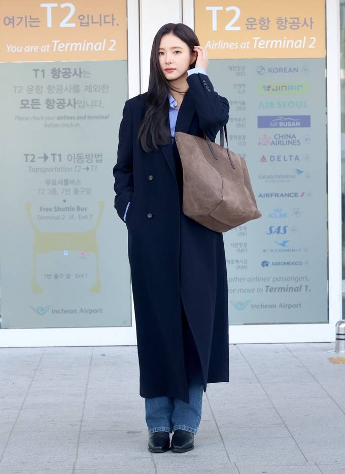 신세경, 공항이 숨멎 미니멀 절제미! 차분한 클래식 실루엣 롱 코트 출국룩