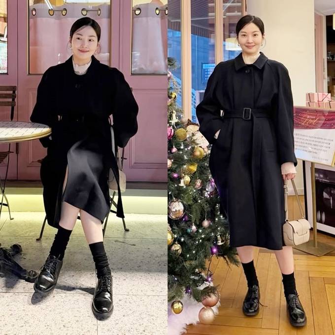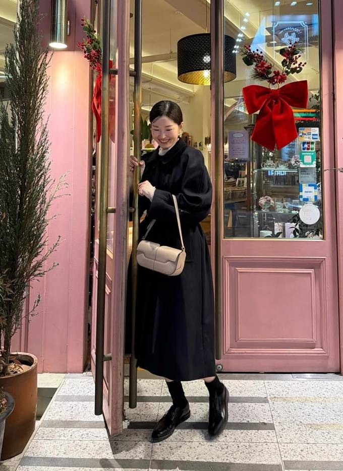 공개한 사진에서 류이서는 하이넥 화이트 블라우스에 블랙 뷔스티에 미니 원피스를 입고 블랙 벨티드 코트를 매치한 얼죽코 스타일로 시크하면서도 품위있는 겨울 하객룩을 연출했다.