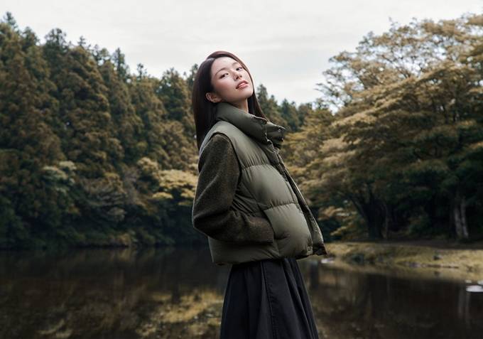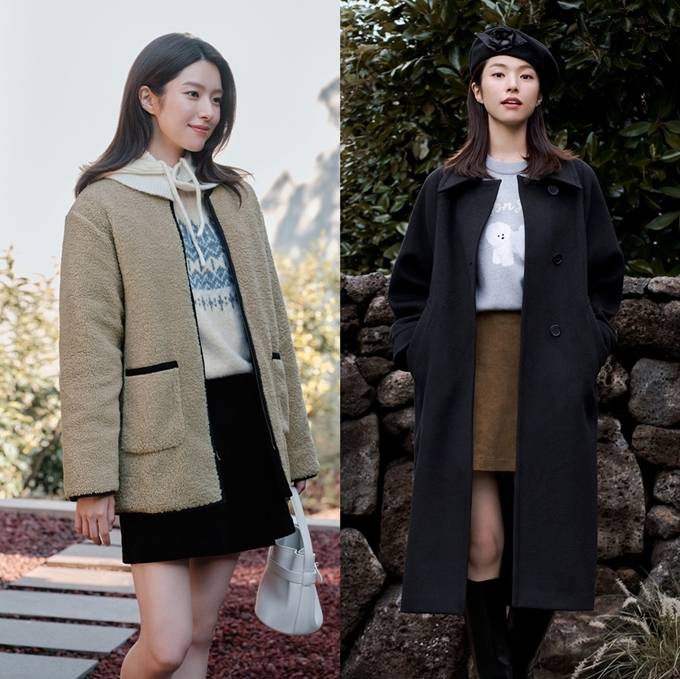자연을 배경으로는 은은한 아이보리•카키 톤 패딩과 스웨터의 조합으로 겨울의 정취를 담아냈고, 도시적 분위기의 컷에서는 차분한 브라운 톤의 리버서블 점퍼와 무스탕 베스트를 톤온톤으로 스타일링해 세련된 겨울 룩을 완성했다.