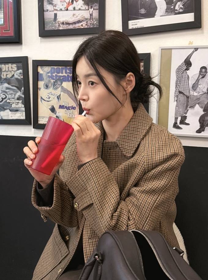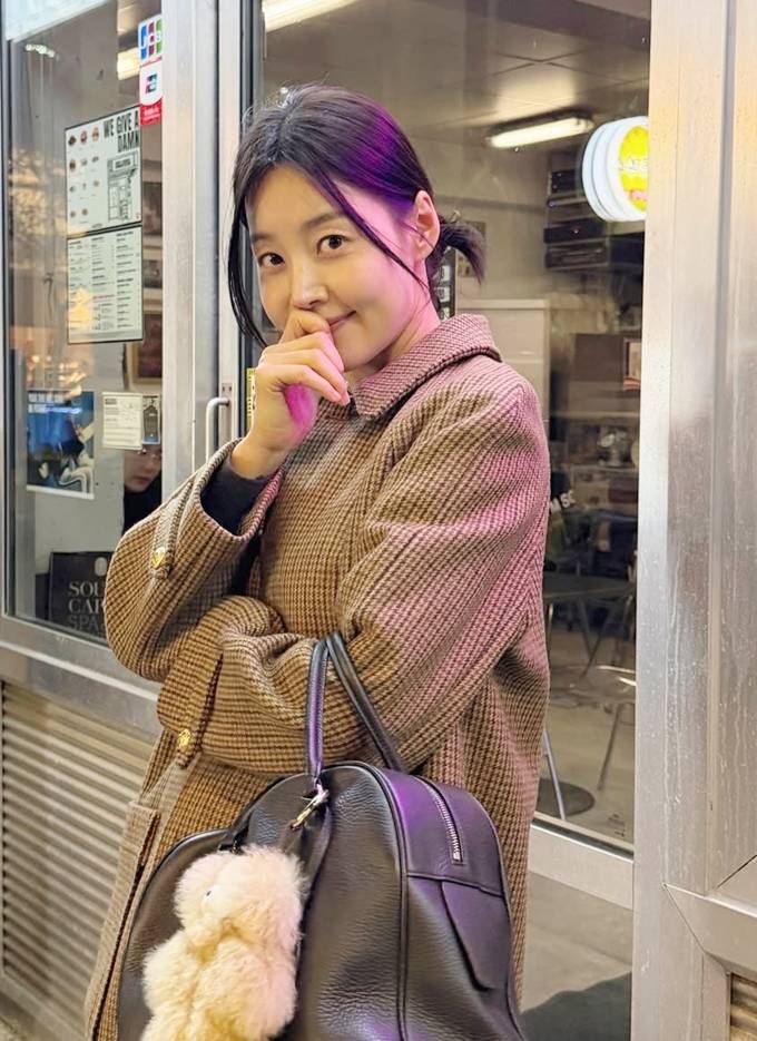 배우 한지혜가 키링백에 헤링본 코트로 귀여운 얼죽코 품격을 드러냈다.
